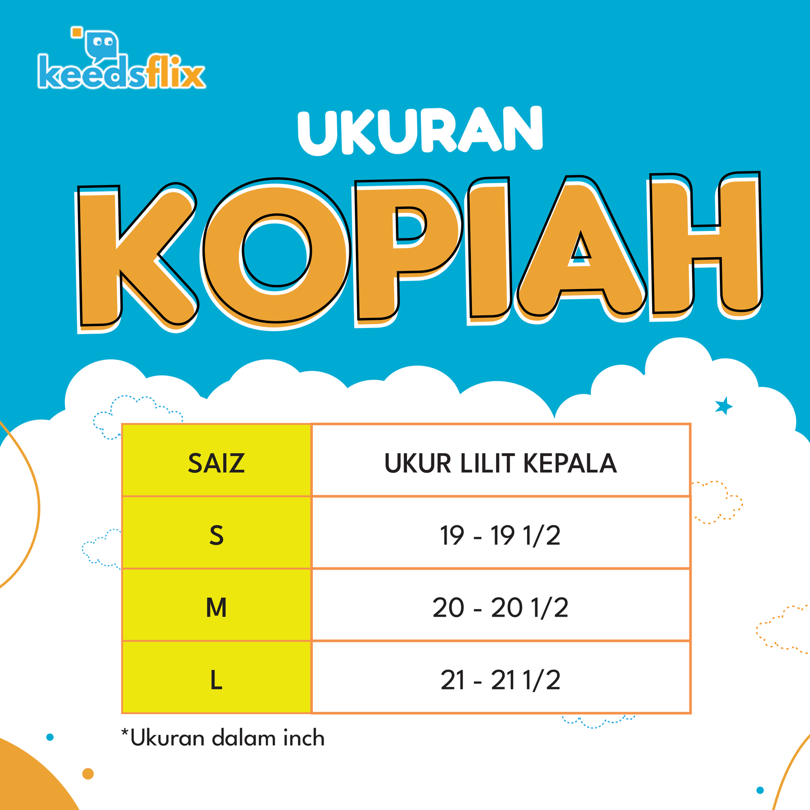 Dapatkan 1 sampul raya percuma dengan pembelian 10 Kopiah Keedsflix! Kopiah Keedsflix direka khas untuk pelajar Keedsflix dengan material berkualiti tinggi yang lembut dan selesa dipakai sepanjang hari. Diperbuat daripada fabrik yang ringan dan tahan lasak, ia memastikan keselesaan maksimum untuk anak-anak. Hadir dalam warna yang menarik, kopiah ini bukan sahaja melengkapkan penampilan, tetapi juga menanam rasa bangga sebagai sebahagian daripada komuniti Keedsflix.