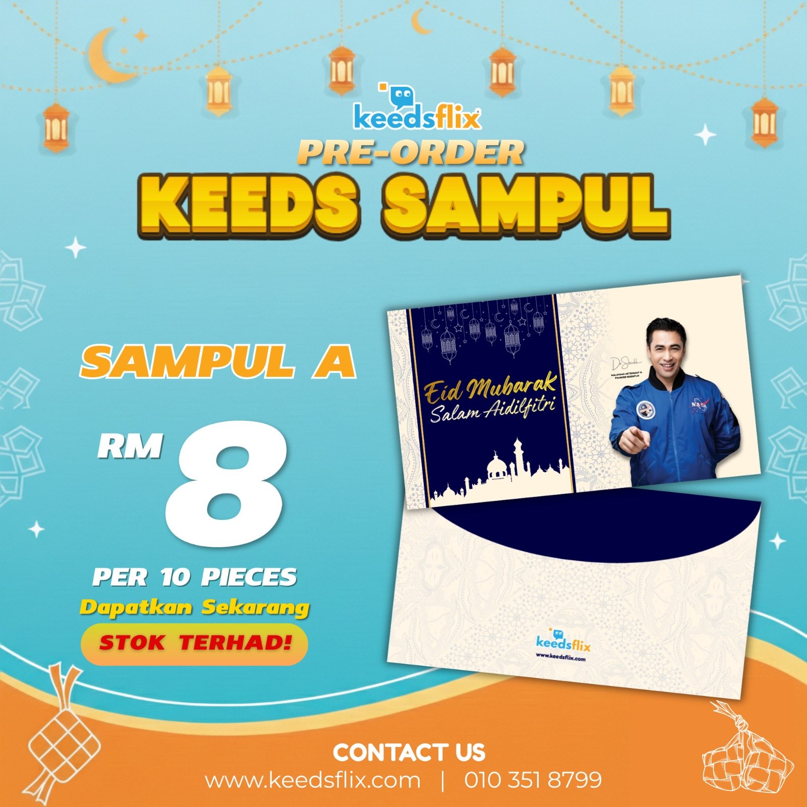 Keeds Sampul adalah sampul raya eksklusif yang direka khas untuk memeriahkan sambutan Hari Raya anda. Dengan reka bentuk unik dan menarik dari Keedsflix, Keeds Sampul menjadikan pemberian duit raya lebih istimewa dan bermakna. Setiap sampul dihias dengan ilustrasi yang ceria dan warna-warni, sesuai untuk kanak-kanak dan juga orang dewasa, menambah keceriaan dalam suasana perayaan. Keeds Sampul adalah pilihan sempurna untuk memberikan sentuhan istimewa pada Hari Raya anda.